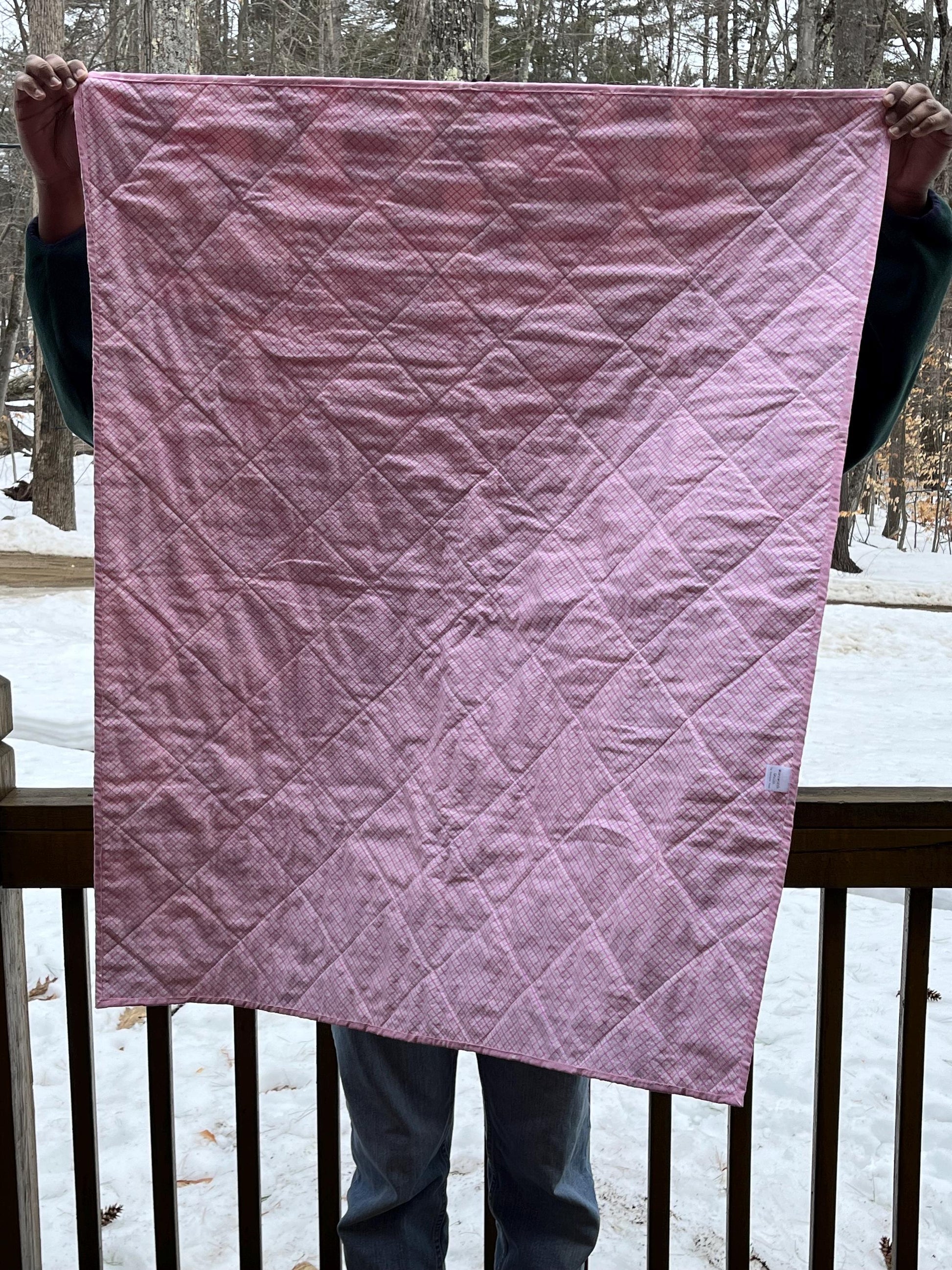 multi pink, flannel backing, 100% cotton, 34”x42” great as baby gift, toddler gift, kid gift or wall hanging.